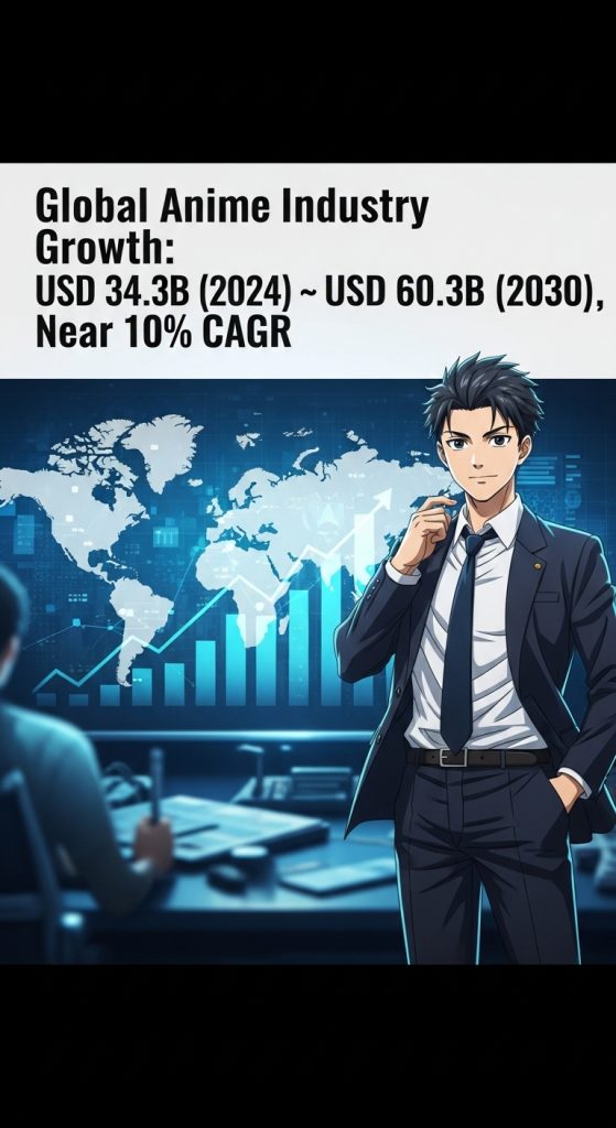 The global anime sector reached USD 34,256.2 million in 2024 and could hit USD 60,272.2 million by 2030, driven by a near 10% CAGR. This remarkable growth trajectory reflects not only the increasing popularity of anime across various demographics but also the expanding global market, which now includes a diverse range of genres and formats appealing to audiences worldwide. Our AI anime market research highlights how artificial intelligence is revolutionizing the industry, from production and storytelling to marketing and audience analytics. Factors such as the rise of streaming platforms, international collaborations, and the integration of advanced technologies in production and distribution are pivotal in shaping this landscape, creating new revenue streams and opportunities for creators and investors alike.